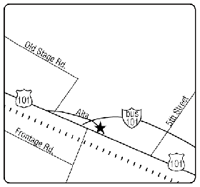 From 101: Go 15 mi. South of Salinas to Gonzales Exit, Hwy. 101 Business. Northbd. exit, Old Stage Rd., Cloverleaf to West side of freeway.