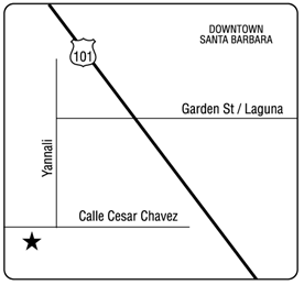 22 Cesar Chavez Blvd. From Hwy. 101: Exit west on Garden St. Turn left on Yanonali. Turn right on Cesar Chavez Blvd. Site located on the left.