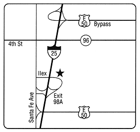 300 Moffat Avenue Northbd. I-25: Take Exit 98A. Right on Ilex. Southbd. I-25: Take Exit 98A. Right on Santa Fe. Right on Ilex. From Hwy 50E: take Santa Fe. Right on Ilex.