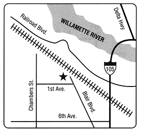 1355 West First Street Exit at I-105, West on 6th Ave. Go 3-1/2 blocks North on Blair Blvd. to 1st. Ave. Continue on Blair Blvd. 1/4 block to 1st. Ave.
