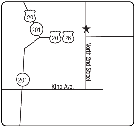 18 North 2nd St. Westbd. Hwy. 20/26: Cross the Snake River into Nyssa. Turn right on 2nd St. Go 1 block to Cenex Station & Farm Store. Cardlock is behind station.