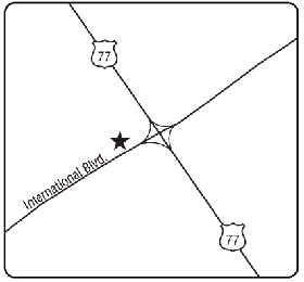 1725 International Blvd. Southbd. US-77: Take International Blvd. to site on the right.