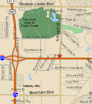 5301 N. Beach St. Site is located 1.5 mi. east of I-35W on NE Loop 820 at Beach St.