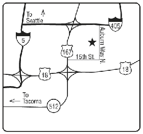 Northbd. I-5: Take Hwy. 18 Exit to Hwy. 167 Northbound. Exit 15th St. N.W. Turn right on 15th St. N.W. Turn left on Auburn Way N. Go 1/4 mi. to site located on the left.