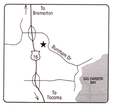 10320 Burnham Drive N.W. From Hwy 16: Take No. Rosedale Exit (also truck route). Go East to Gig Harbor, 1/4 mile on right.