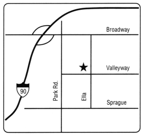 East 7707 Valleyway From I-90: Take Broadway exit, go East on Broadway 3 blocks to Park Rd. Turn Right on Park Rd. Turn Left onto Valleyway.