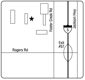 123 Foster Creek Rd. From I-5: Take Exit 57. Site located 1/2 mi. west of Exit 57 on the corner of Rogers Rd. and Foster Creek Rd.