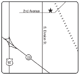 1/4 mi. East of US 97 on SR 22: North on S. Division St. Right on W. 2nd Ave.