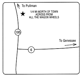 Northbd. Hwy 195: 1/4 mi north of town (across from the wagon wheel fence).