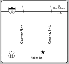 Go approx. 2 mi. to US61 (Airline Dr.). Turn left