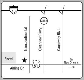 5001 Transcontinental From I-10: Take Clearview Exit South. Go approx. 2 mi. to Airline Dr. Turn right on Airline Dr.Go 1 block to site on the right.