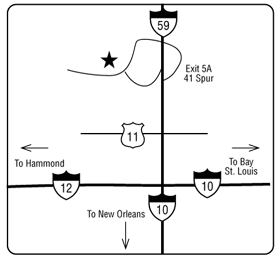 39575 Pump Slough From I-10 or I-12: Take I-59 North towards Hattiesburg. Take Exit 5A (41 Spur, Pearl River) to site on West side of I-59.