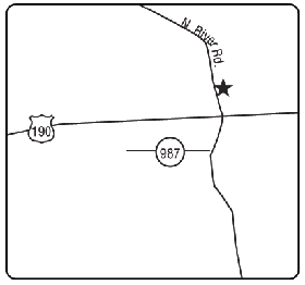 4169 N. River Rd. Exit Hwy. 190 to Hwy. 987. Go 500 yards, turn left (North) on River Rd. Go 400 yards to site.