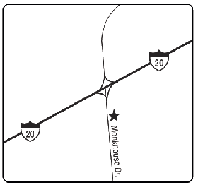 5201 Monkhouse Dr. From I-20: Take Exit 13 to Monkhouse Dr. Go South 1/8 mi. to Airport Citgo on the left.